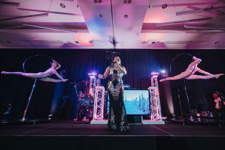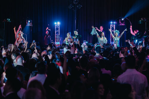Bobby, behind the DJ booth, was masterful. His selections kept the dance floor packed all night, seamlessly blending classics with modern hits, all while syncing perfectly with the live elements of the show. The fusion of DJ beats with Bobby's live drumming was something our guests had never experienced before and they couldn't stop raving about it and still continue to rave about it to this day!